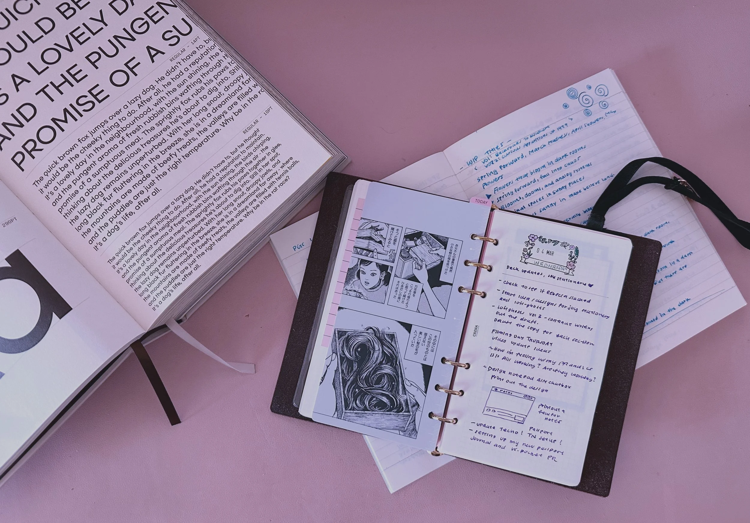 i’ll be honest, it’s been a brutally slow amount of progress with the zine ever since i lost my full time day job. and i really thought that i’d be motivated more than ever to crank creative projects out, do my own thing, make more content, blah blah blah. but really, all i’ve done is feel sick, sulk, and use my journals as a form of escape. and really, is that so bad? can i not just chill for a bit? i know that at the end of the day, it’s about making a living and making things happen with the free time i have. but i don’t really feel free at all. if anything, there’s an ever-growing pile of things i need to work on. the difference is that i’m my own boss now. and i’m not a productive boss lol. i’m just trying to survive honestly. and the thing is, i am writing all this, not to be negative but to give permission to be okay with not getting it done. i want to take my time with my own personal work. i don’t want to rush things just to do it. i want to do it right this time.